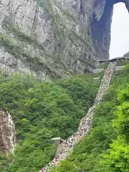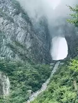 Tianmen Cave (天门洞), meaning "Heaven’s Gate Cave", is a natural mountain arch located on Tianmen Mountain in Zhangjiajie, Hunan Province, southern China.