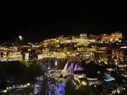Night tour of the waterfall light show (lights on at 7:30 PM): take panoramic photos of the "ancient town hanging on the waterfall" from the viewing platform.