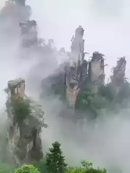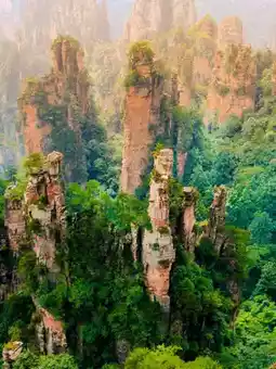 🌲 Steep rock pillars covered with lush pine trees, feel like you've stepped into a fantasy world.