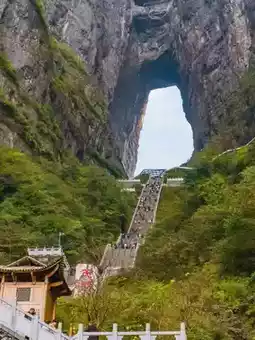 ⛩️ Climb the stairs to Heaven's Gate (Tianmen Cave) and discover the magnificence of the place.