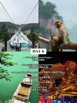 I visited Zhangjiajie Grand Canyon and its iconic glass bridge. 🌁 Explored Oxygen Square 🍃, Huangshi Village 🐒, and Golden Whip Stream 🌿 in Zhangjiajie National Forest Park. In the evening, I moved to a hotel near Tianmen Mountain cable car in Zhangjiajie city. 🚠