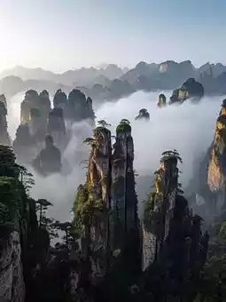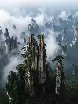 1. Towering Peaks: Numerous steep and lofty stone pillars rise straight from the ground, each with a distinct shape, resembling giant columns holding up the sky—a true masterpiece of nature.