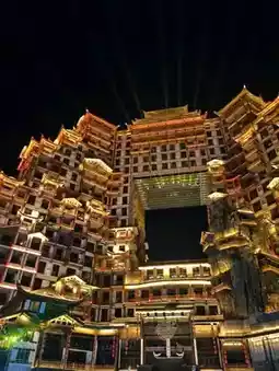 After dinner, I took a taxi to the "72 Wonderful Towers." It's recommended to arrive after 7:00 PM for the best lighting. The towers are primarily food stalls and restaurants, with a few retail shops and scheduled song, dance, and stunt performances. The second floor offers a photo area for 10 yuan per photo, which is a good value. If you're not particularly interested, checking in from the outside is sufficient. #ZhangjiajieInternetCelebrityCheck-inSpot
