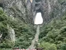 As we stood atop the mountain, overlooking the "Tianmen Cave," seemingly carved by a divine axe, we were filled with awe. As the breeze blew, clouds and mist drifted across the mountain, creating a breathtaking landscape painting. As we ascended, we looked back to see the intertwined landscape of distant mountains and mist. Especially when the mist drifted in, the entire mountain seemed shrouded in a mysterious veil, a beauty beyond belief.