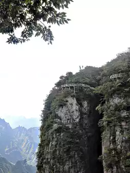 As you ascend Tianmen Mountain, you'll suddenly encounter a massive rock formation with a gigantic hole carved through it—this is Tianmen Cave. From afar, it looks intriguing, but as you approach, its sheer size makes people appear like mere dots. It feels like a movie set, yet it's astonishing to realize that this was sculpted by nature over thousands of years.