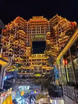 Located in Zhangjiajie, Hunan, with a total building area of 110,000 square meters and a height of 109.9 meters, the "Seventy-Two Wonderful Buildings" is recognized by the Guinness World Records as "the world's tallest stilted building form building" 👍 From a distance and up close, it is like an aerial pavilion, fantasy and confusing😲. The three major sections of Tiangong Wonderful Building, Fireworks Old Street and Seventy-Two Wonderful Villages provide an immersive Tujia cultural experience.