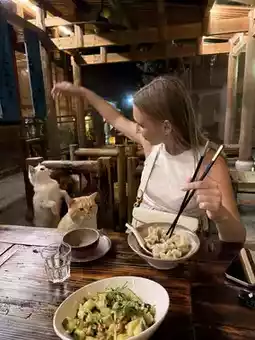 The hotel has a restaurant where you can enjoy a delicious and affordable meal. There are also animals here. Cats, dogs, and even a monkey.