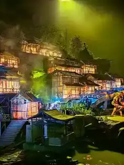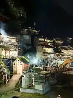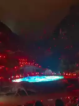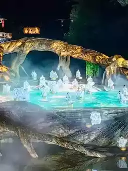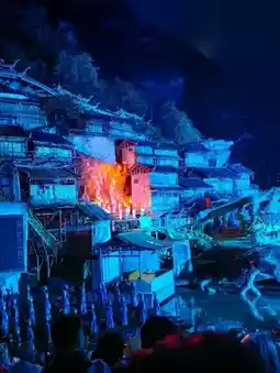 On October 16, we attended the 'Tianmen Fox Fairy' (天门狐仙) show, which takes place outdoors at the foot of Tianmen Mountain, where the Tianmen high-speed cable car route ends. The set design is meticulously crafted. Before the performance, the actors greet the audience, which is a very cool experience.