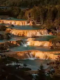 Use slow shutter speed with a tripod to capture flowing water and maple leaves in the middle section of Golden Whip Stream.