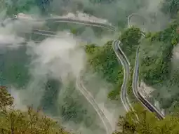 Take a panoramic cable car ride on the world's longest cableway (Tianmen Mountain Cableway), ascending over 1,279 meters in 30 minutes. From above, you'll marvel at the winding 99-bend road and the forest below, which turns into a vibrant palette of red, orange, and golden hues. It's a truly majestic sight.