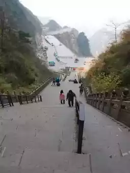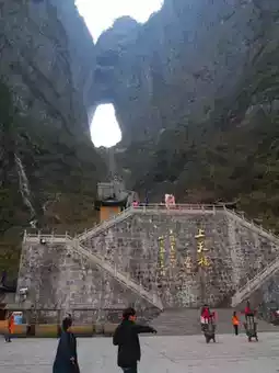📝: Tianmen literally means "Heaven's Gate," and Tianmen Mountain features a large cave that resembles a giant gate. The mountain is over 1,500 meters high, so the temperature at the summit is cool and misty in the morning. This place is truly breathtaking, truly beautiful, and a must-see. The climb to the gate is quite steep, and there are many steps.