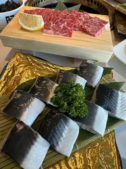 Each table is provided with six sauces: yakiniku sauce, magic seasoning salt, lemon sauce, Korean chili sauce, rose salt, and black pepper
