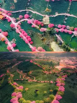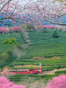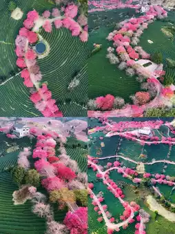 🌟Highlights: This is the core viewing area of Yongfu cherry blossoms. Hundreds of thousands of cherry blossoms are planted in the tea garden. Pink, red, and white cherry blossoms are intertwined with green tea trees, forming a beautiful picture.