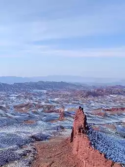 Ping Shan Lake Grand Canyon is definitely worth a visit. At the entrance, staff will explain the routes for regular and in-depth tours. You need to scan your ID card to enter. First, take the sightseeing bus to the high observation deck. After getting off, staff will introduce how to explore the high observation deck. After finishing the high observation deck tour, in-depth tour visitors will return to the sightseeing bus drop-off point and take the adventure vehicle to the bottom of the canyon. Then, ride a camel or a camel cart to go deeper into the canyon, followed by a hike to get up close with the canyon. (Due to deep snow, the narrow path is currently closed.) Head towards Lingzhi Valley (it's best not to wear white shoes and pants as they can easily get stained red). Climb the 'chain' stairs to the exit of the scenic area (you can bring some snacks to replenish your energy before climbing the stairs). After walking out of the canyon, the sunset over the mountains is breathtaking. The setting sun, the vast snow canyon, the interplay of light and shadow, and the splendid afterglow create a visual feast in the winter Grand Canyon. Recommended itinerary: Qinghai-Gansu five-day small loop (Mati Temple route) Day 1: Xining --83km 1h30min -- Riyue Mountain 62km 1h -- Qinghai Lake 152km 2h30min -- Chaka Salt Lake 10km 8min -- Chaka Town (overnight) Day 2: Chaka 167km 2h40min -- Huanhu West Road 55km 1h -- Gangcha Grassland 227km 3h23min -- Binggou Forest Sea 206km 3h25min -- Zhuo'er Mountain 5km 10min -- Qilian (overnight) Day 3: Qilian -- 105km 1h36min -- Biandukou 70km 1h20min -- Mati Temple 77km 1h30min -- Danxia Landform 30km 35min -- Zhangye (overnight) Day 4: Zhangye City 60km 1h20min -- Ping Shan Lake Grand Canyon 60km 1h10min -- Xixia National Temple 2km 5min -- Zhangye (overnight)