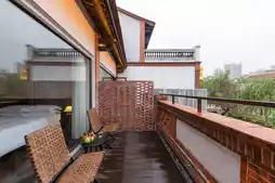 The most captivating feature is the spacious terrace. Facing the tranquil Dongsong River, the terrace offers a picturesque view of willow trees swaying gently in the breeze. Sunlight dances on the river's surface, resembling scattered gold. In the morning, enjoy a cup of coffee on the terrace while watching boats glide by, experiencing the awakening of the ancient city. In the evening, the sunset's warm hues dye the river orange, creating the perfect backdrop for sipping tea and reading amidst the serenity.