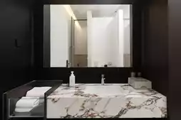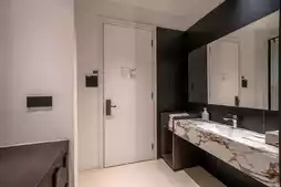 Open the window, and you'll be greeted by the lively street scenes of the ancient city. The view encompasses gray brick walls, black-tiled roofs, and nostalgic arcade buildings. The highlight of the room is the street-view bathtub, where you can enjoy a relaxing soak while watching pedestrians leisurely stroll by and listening to the soft murmurs of Minnan dialect from the streets below. It's as if the gentle charm of the entire ancient city is wrapped around you. The bathroom is designed with separate wet and dry areas, ensuring cleanliness and comfort, with thoughtful details throughout.