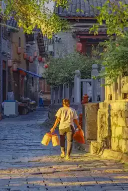 Tips: Most shops in the ancient town only accept cash! At sunset by Dailong Bridge, vendors sell glutinous rice cakes (red bean/peanut fillings) - both varieties are incredibly delicious, don't miss them!