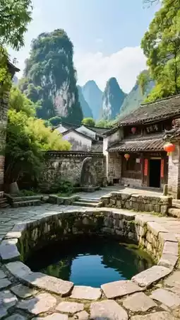 4. 【Xianren Ancient Well | Seven Connected Wells, Source of Life】 - Seven round ancient wells lined up by the mountain, never drying up - Once the center of drinking water, vegetable washing, and laundry for the whole town - Even now, some still draw water for tea; the water is clear, cool, and sweet ---