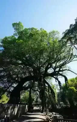 The 800-year-old dragon claw banyan tree is strong and twisted, with tangled roots and towering branches, truly like a flying dragon in the sky...