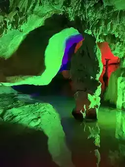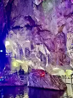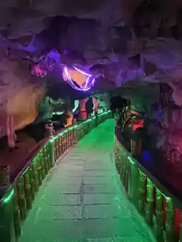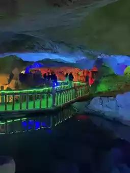 This naturally formed cave features strange rocks, such as the "Dinghai Shenzhen" and the "Havoc in Heaven." Combined with the colorful lights, it truly feels like you're transported to a scene from Journey to the West. Once you step out of the cave, every photo you take is a masterpiece.