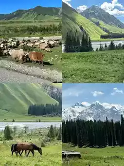- General Bridge → Flower Terrace → Glacier Viewpoint: 4km wooden trail through spruce forests, with marmots "demanding" snacks🐿️! The endpoint faces the icy glow of Muzart Glacier—speechless!❄️