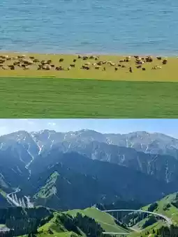 At the foot of the Tianshan Mountains lies the breathtaking beauty of Xinjiang! Where grasslands whisper to lakes, snow-capped peaks blend with starry skies, the aroma of naan bread wafts through grapevines, and the ancient Silk Road camel bells awaken millennia of history.