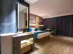 My room is located on a high floor of the hotel, and when I open the door, the view takes my breath away. The spacious, bright interior exudes luxury and grandeur. The floor-to-ceiling windows offer a panoramic view of the city's vibrant skyline, while sunlight filters through the curtains, casting golden patches on the bed. The room is equipped with state-of-the-art smart devices—just a touch of a button controls the lighting, temperature, and curtains. The bathroom is fully stocked with premium amenities, from imported marble vanities to a top-tier massage bathtub, every detail reflecting the hotel's pursuit of excellence.