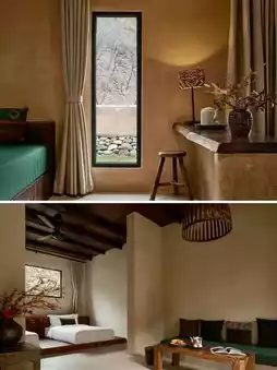 Xipo has three courtyards: Beiyang, Niubei, and Xilu. They are scattered throughout the village, offering views of the mountains in all four seasons. The design is inspired by the farmland landscape of southern Shaanxi and features traditional southern Shaanxi architecture, including tiled roofs, brick carvings, and yellow rammed earth walls.