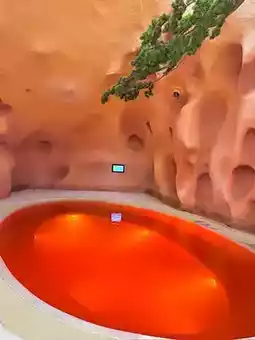 All kinds of special hot spring pools are available, so comfortable. The blue and white architectural style is also great for photos. The second floor is for video games