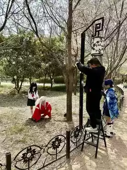 I watched as photographers directed their subjects—a young woman twirling her wide sleeves, a child giggling as petals landed in her hair. One particularly striking scene: a lone figure in deep emerald hanfu standing by the lake, her reflection blending with the blossoms on the water’s surface. Nearby, a vendor rented out traditional costumes, and I couldn’t resist joining in. Draped in soft lavender silk, I felt an unexpected connection to the centuries of springtime admirers who had stood under these same fleeting blooms.