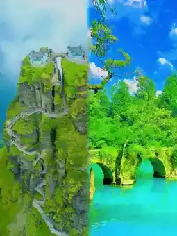 Known as the "emerald on the belt of the earth", it integrates waterfalls, lakes, and primitive forests. The Xiaoqikong Ancient Bridge spans the clear water, and you can walk through the water forest, which is like a fairyland.