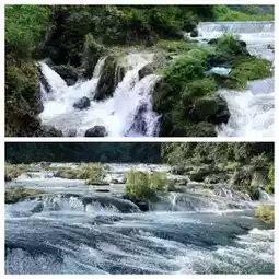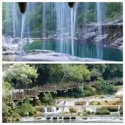 Second half: Silver Chain Waterfall (Pic 2❗️ Emerald-colored torrents plunging into the deep pool) → Water-Shaped Stone Forest (navigate through rocky crevices, watch for moss)