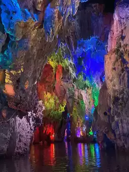 💡Enchanting caves: Boat through water-filled caverns under dragon-like stalactites🦋. A 50-meter underground waterfall will make you reach for a jacket!