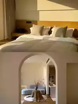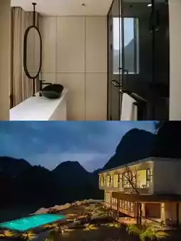 The indoor facilities are well-equipped, with smart controls, speakers, and smart toilets. The bedding is soft and cozy, perfect for lying down and enjoying the view. The bathroom has a dry and wet separation, disposable toiletries, and a bathtub. After a tiring day, soaking in the tub to relieve fatigue is super convenient.
