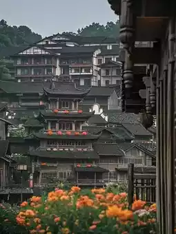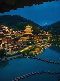 4⃣️ Wujiang Village Stilt Houses (lantern shots of Miao girls)