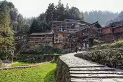 Zhaoxing Dong Village, hidden in the mountains, features primitive and mysterious Dong village scenery and winding layered terraces that complement each other. The village is built according to the mountain terrain, orderly, quiet, and harmonious, with every corner containing profound Dong culture.