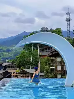 ▫️ The only hotel in Qianhu Miao Village with an infinity pool, located high in the village, offering a panoramic view of the entire village, the same angle as the village viewing platform 🙌