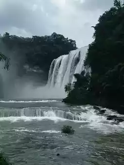 💥 The Main Fall - A Wall of Sound: The Baishui River (White Water River) hurls itself over a 77.8-meter tall, 101-meter wide crescent-shaped cliff. The water doesn't just fall; it explodes upon impact with the Rhinoceros Pool below, sending up a perpetual storm of mist and thunder that can be felt and heard long before it is seen.