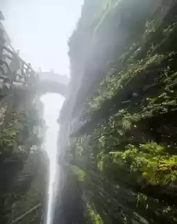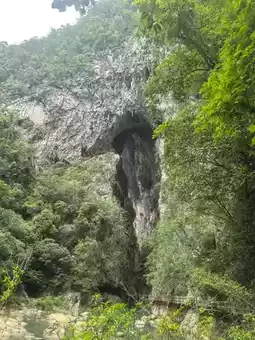 Third stop: Libo Xiaoqikong’s Wolong Pool looks like the sky itself has kissed the water, so blue it’s breathtaking. The Natural Bridge, Laya Waterfall, Sixty-Eight Step Waterfall, and Cuigu Waterfall—jumping down the stone steps, the splashing droplets shimmer green. The mint-scented breeze carries moisture, bringing a refreshing and pleasant coolness.