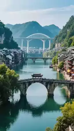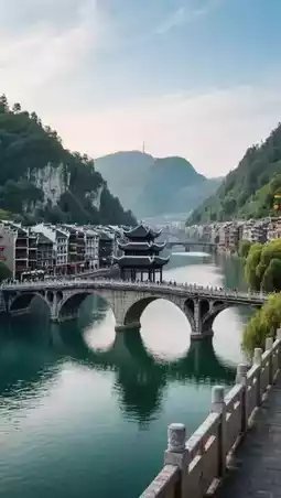 - Zhusheng Bridge is a Ming dynasty ancient bridge connecting both banks, with a pavilion on it
