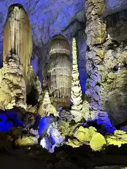 Zhijin Cave covers a vast underground area and requires about two and a half hours to explore at a leisurely pace. The cave features significant elevation changes, resulting in many unique rock formations. Under the colorful lighting, visitors can't help but marvel at the natural wonders.