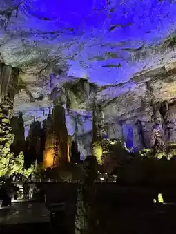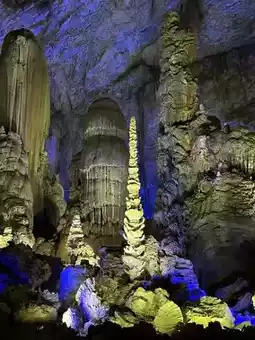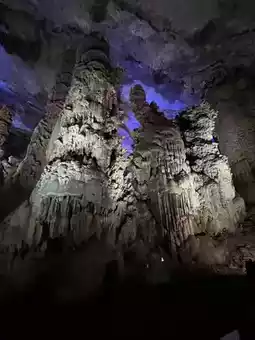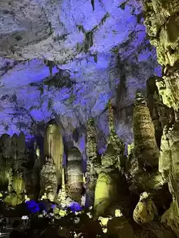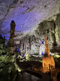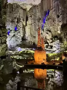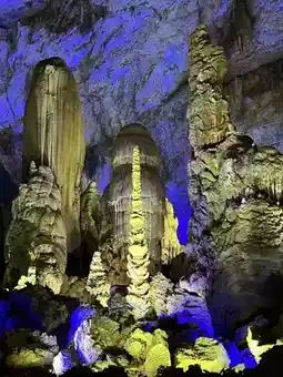 Known as the 'King of Karst Caves,' this 17-kilometer underground marvel features breathtaking sights like the Overlord Helmet and Silver Rain Tree, resembling an alien world! Under the lighting, the karst formations look like giant artistic sculptures.