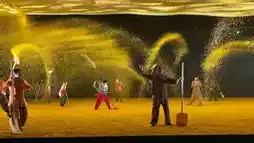 Sit in the 360-degree rotating viewing area as the 1942 famine story unfolds all around. The trembling old farmer handing over grain, combined with real wheat grains flying through the air, makes you want to reach out and catch this history filled with warmth.
