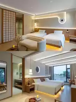 The farmhouse has a total of 51 courtyard suites, including Guduo Courtyard Rooms and Hot Spring Courtyard Rooms with private hot springs. Each room is equipped with an intelligent guest control system, underfloor heating, and a large bed, ensuring a comfortable stay. Some rooms also have private terraces and bathtubs where you can enjoy the tranquil countryside views at any time.🌳🛁
