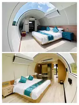 Inside is a space capsule with large floor-to-ceiling windows 🪐🌁🏥