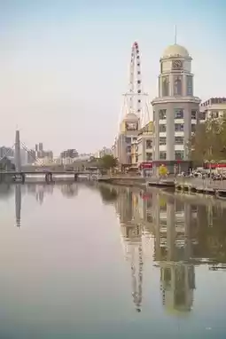 From the bridge, you can take pictures of the dreamy river view and the Ferris wheel on the shore🎡