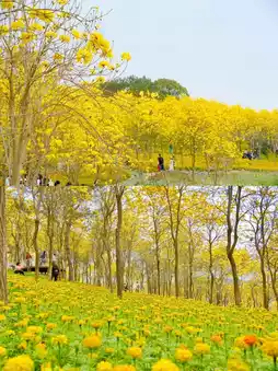 Tens of thousands of yellow tabebuia have entered full bloom🌼Golden and brilliant.