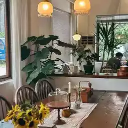 The original wood tone is matched with Japanese decorations and forest green plants🪴