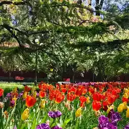 In addition to the stunning tulips, the thousand-year-old cypresses in the garden are also eye-catching. Under the caress of the spring breeze, the cypress trees fade from dark brown to vibrant emerald green, contrasting beautifully with the colorful tulips. On one side are gorgeous flowers, and on the other side are ancient trees that have gone through the vicissitudes of time. Colors and history intertwine and collide here, bringing a double shock to the vision and the soul.