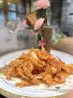 As soon as the dish was served, I was attracted by the fragrance. Fresh lemongrass shreds were sprinkled on the fried golden prawns, which are delicious!